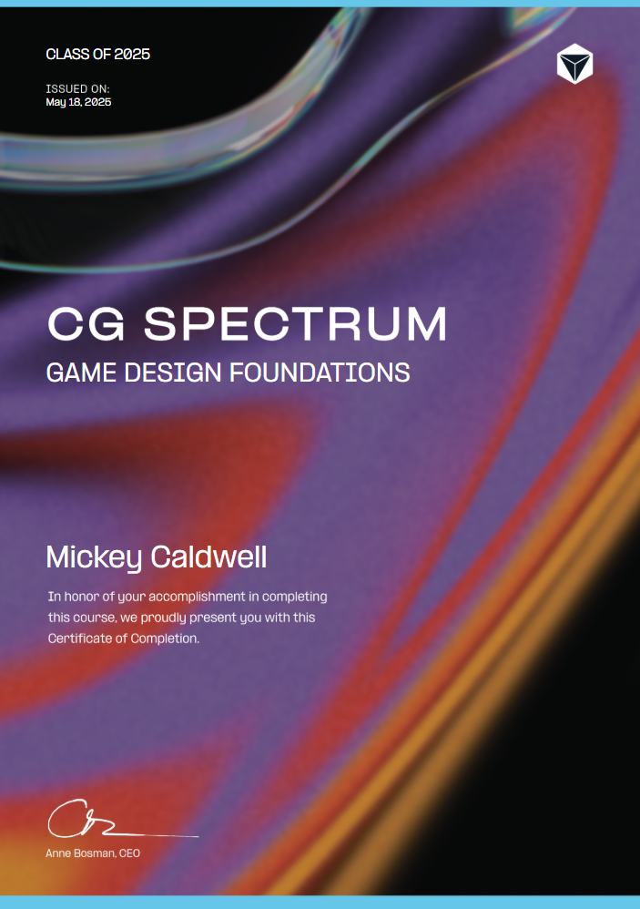 As a video game design student, I received training in both the creative and technical aspects of game development, preparing me to design and build engaging, polished gaming experiences from the ground up.