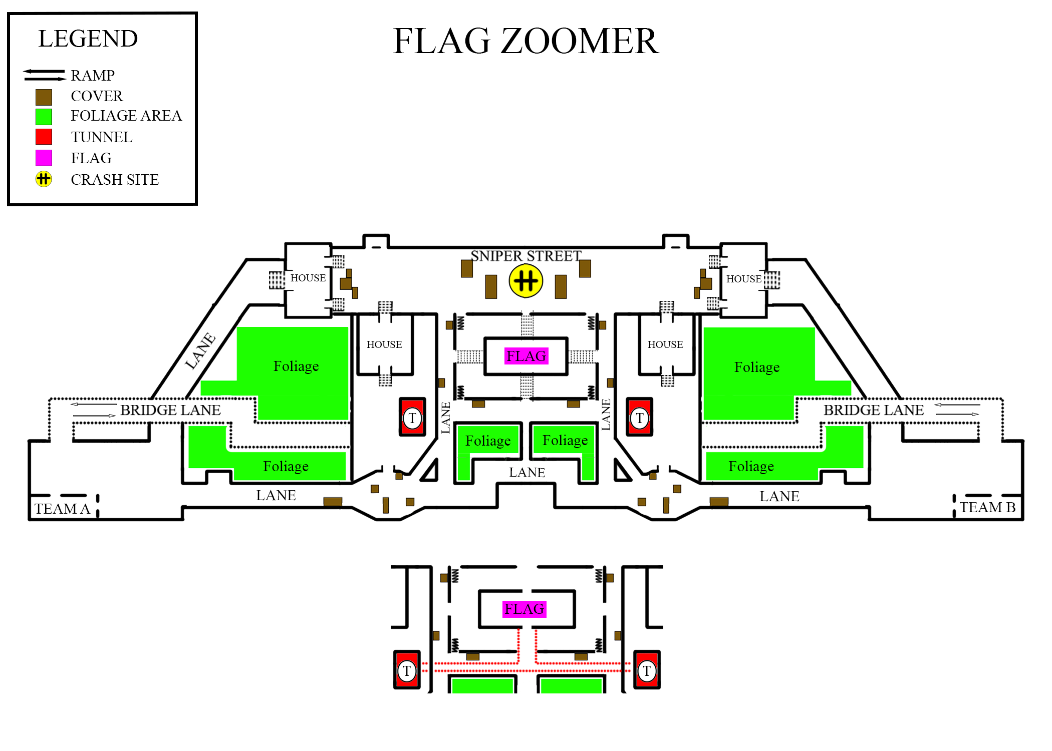 Here’s a top-down look at the level Flag Zoomer. This version gives a clear view of the layout, showing how the main areas connect and where players will move through.
